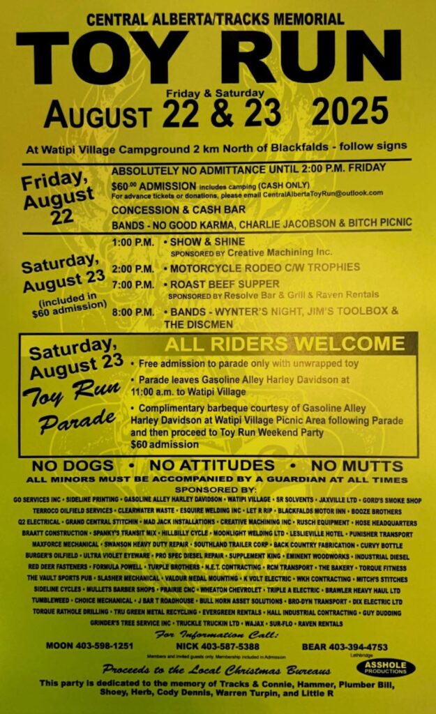 Thank you for the continued support from the Central Alberta Toy Run and Gasoline Alley Harley Davidson for hosting the event.
